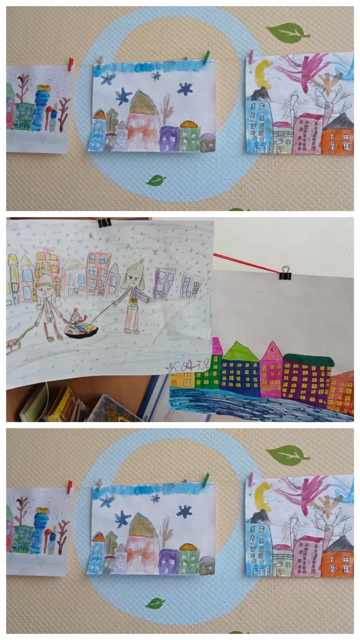 В нашем детском саду проходит галерея рисунков «Зима в городе».