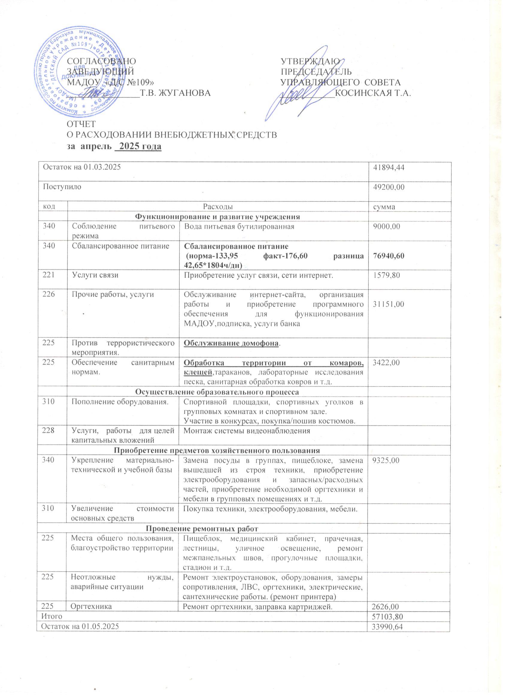 Отчёт о расходовании внебюджетных средств за апрель 2025 год
