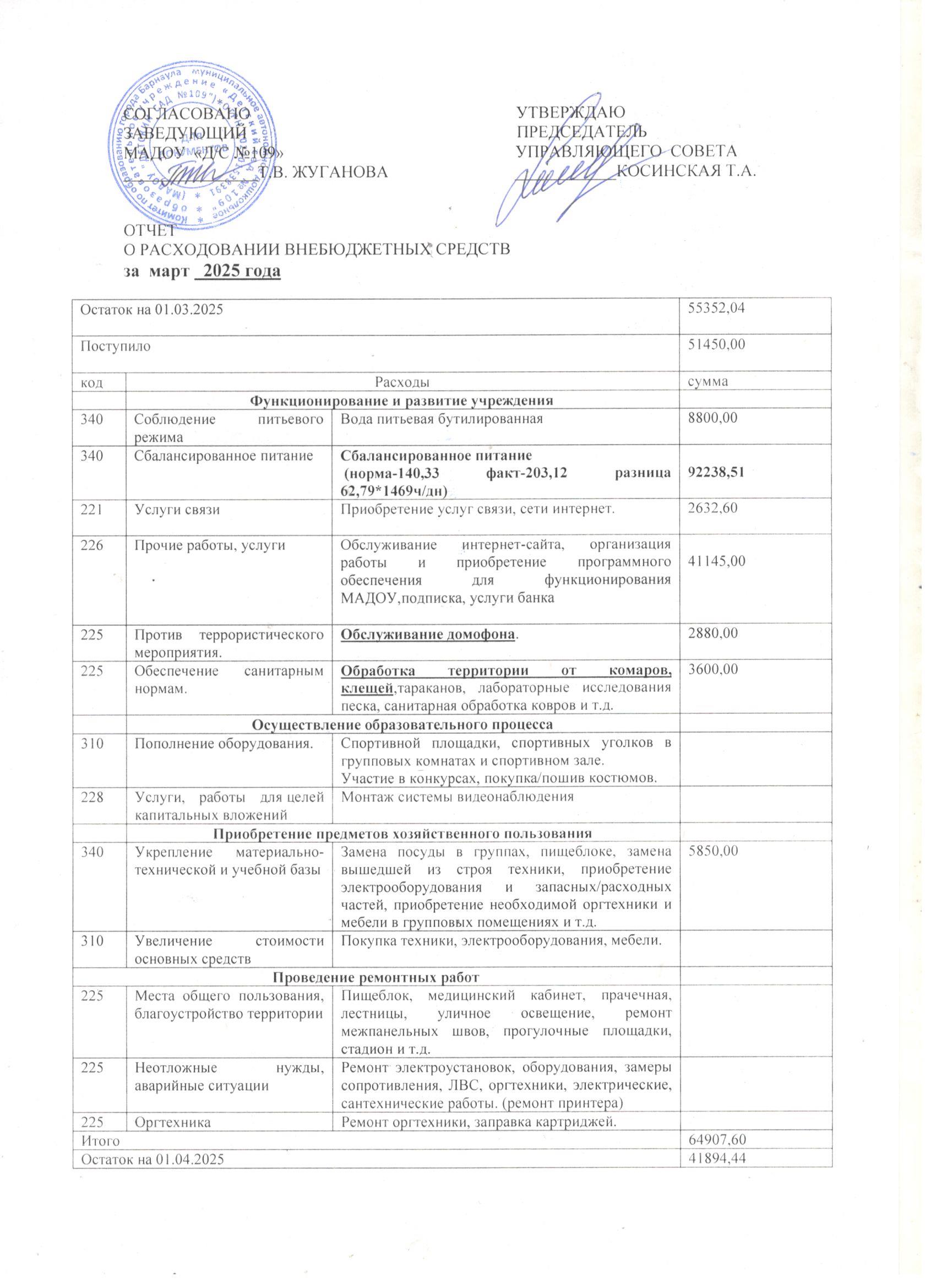 Отчёт о расходовании внебюджетных средств за март 2025 год