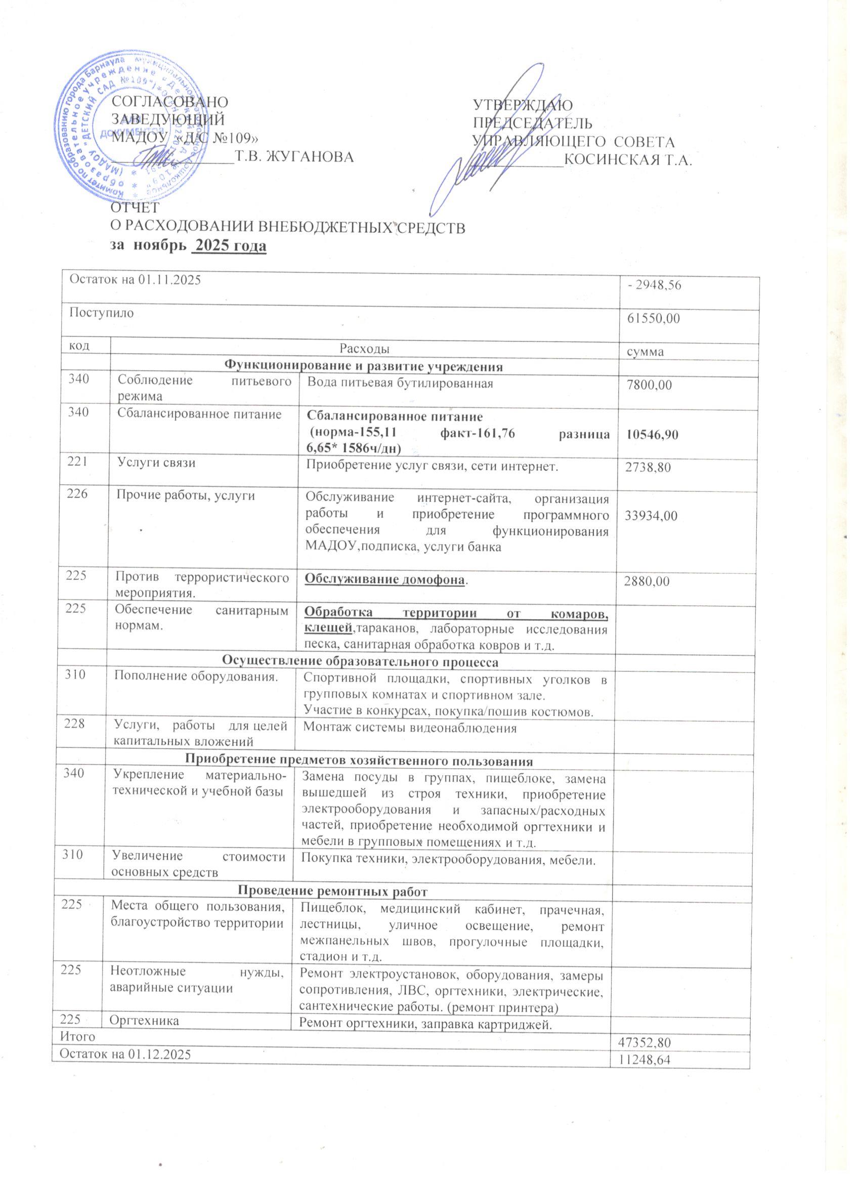 Отчёт о расходовании внебюджетных средств за ноябрь 2025 год