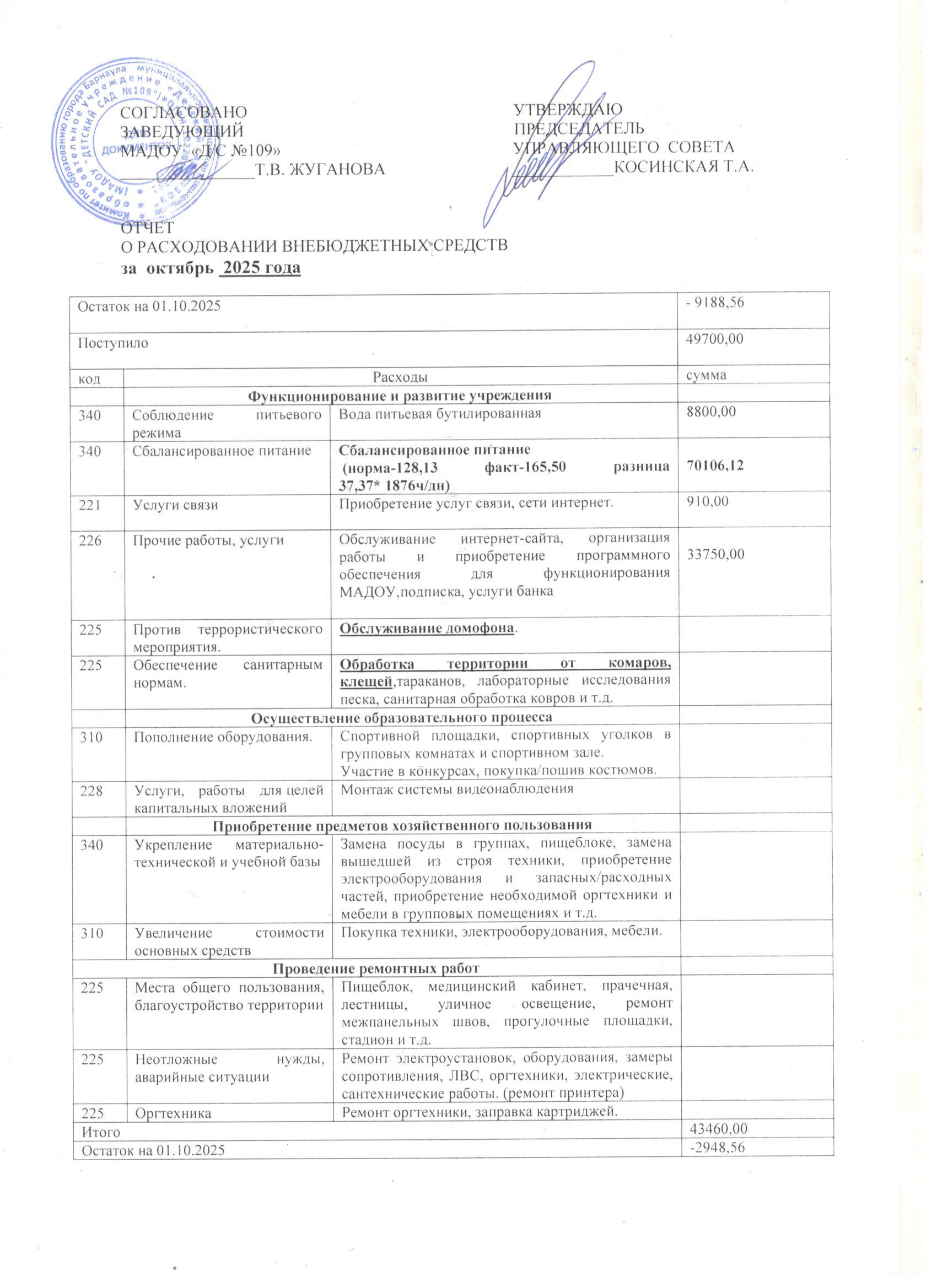 Отчёт о расходовании внебюджетных средств за октябрь 2025 год