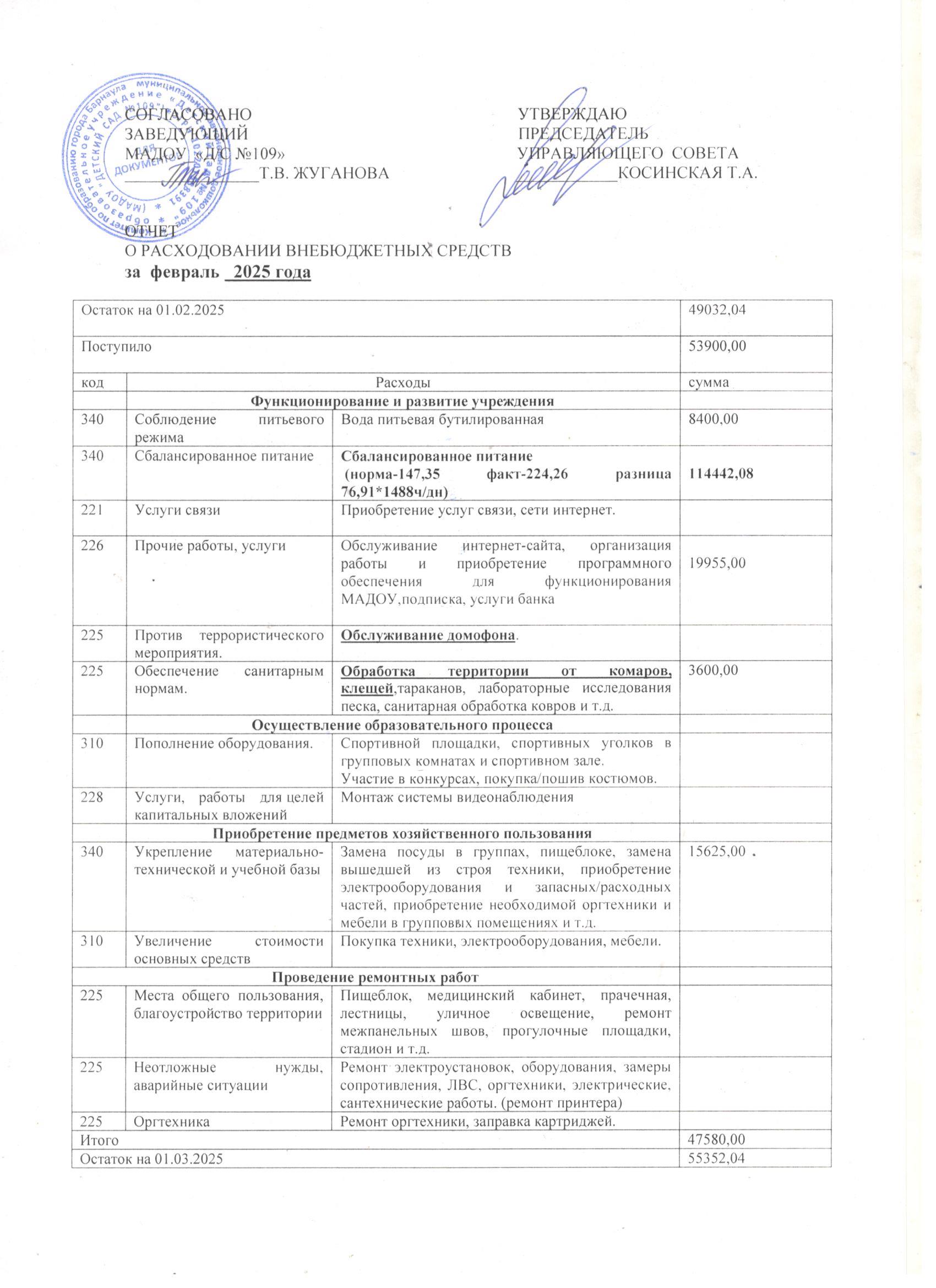 Отчёт о расходовании внебюджетных средств за февраль 2025 год